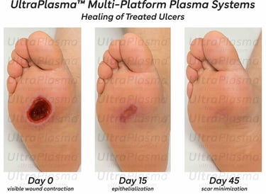 UltraPlasma™ multi-platform plasma systems, through a carefully orchestrated interaction of arc, argon, and helium plasma emissions and reactive gas species, offer a revolutionary approach to chronic ulcer treatment. By addressing the multifaceted impairments in chronic wound beds — including infection control, oxygenation, inflammation modulation, and tissue regeneration — UltraPlasma™ presents an integrated, safe, and highly effective solution.